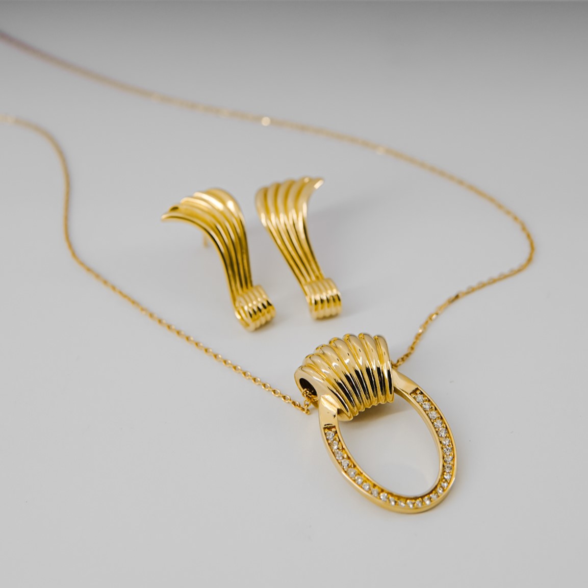 نیم ست شامل گوشواره ها و پلاک است و زنجیر باید به صورت جداگانه تهیه شود.